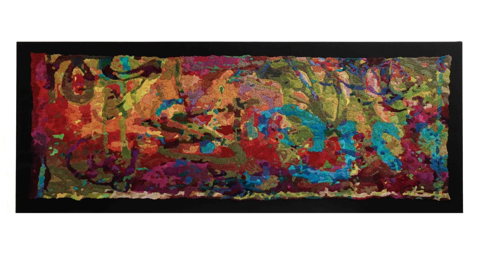 “Urban Marking 4” by Jane Kenyon — cotton & rayon thread on canvas (72 x 188 x 3.5 cm),