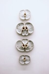 Maya Florey (they/them/theirs) is a multi-disciplinary visual artist specializing in large-scale biomorphic ceramic installations. Maya received a BFA in Visual Arts with a specialization in Ceramics from Emily Carr University of Art + Design in 2023, where they were a recipient of the John C. Kerr Chancellor Emeritus Award for Excellence in Visual Arts. Since graduating, they have been teaching at arts centres and community studios and working at a craft co-op. They have taken part in multiple group shows and in 2024, received the Carole Badgely Emerging Artist Award. In 2025, Maya completed a six month FLEX Artist Residency at Medalta in Medicine Hat, Alberta, thanks to the support of the Micki MacKenzie Educational Craft Bursary and the Canada Council for the Arts. Florey currently lives and works on the unceded territory of the Snaw-Naw-As, Snuneymuxw and Stz’uminus First Nations.