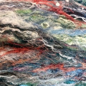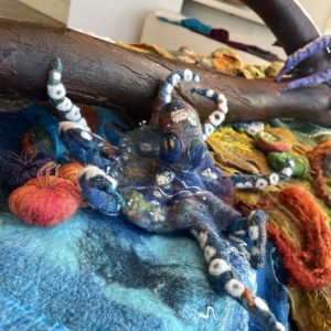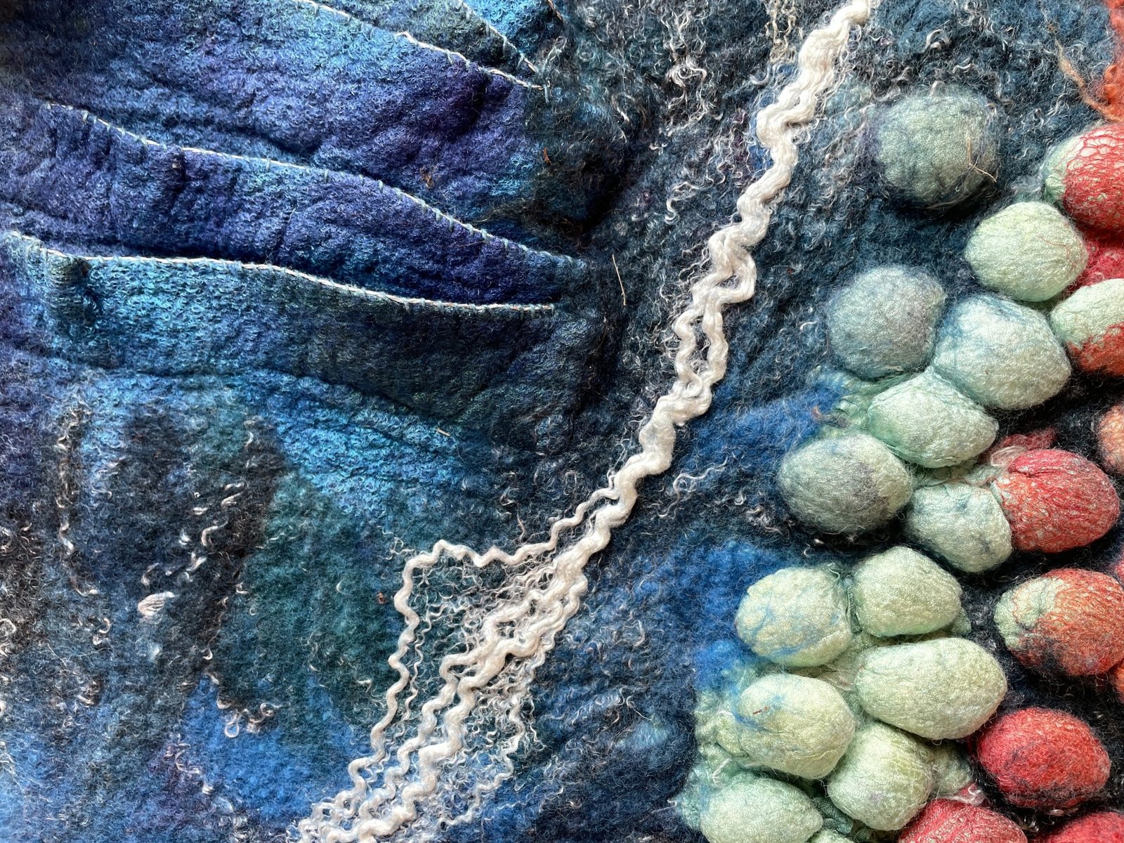 She has been felting for seven years. Before discovering this, she was an avid self-taught seamstress from a very young age, starting on her mother’s treadle machine. Since then, she has been very fortunate to have taken numerous on-line and in-person courses from many amazing international masters. Lisa usually works with private designers and clients creating a range of eclectic pieces including wall hangings, garments, and accessories.