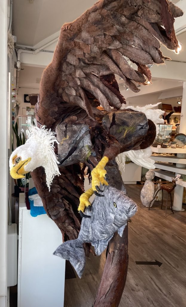 Lisa has created these animal sculptures from wire armatures with the use of wool roving, natural embellishments, and hand-dyed silks.