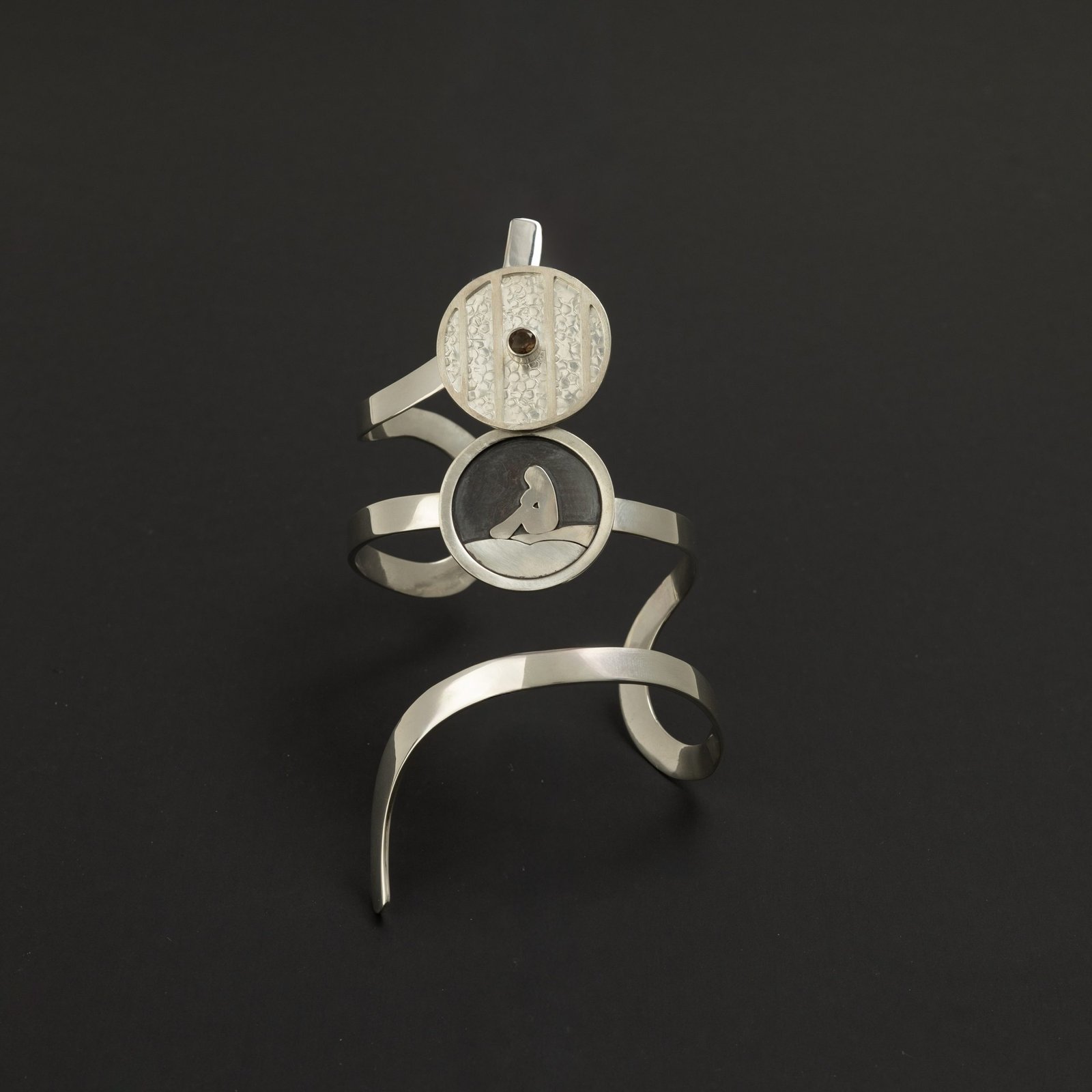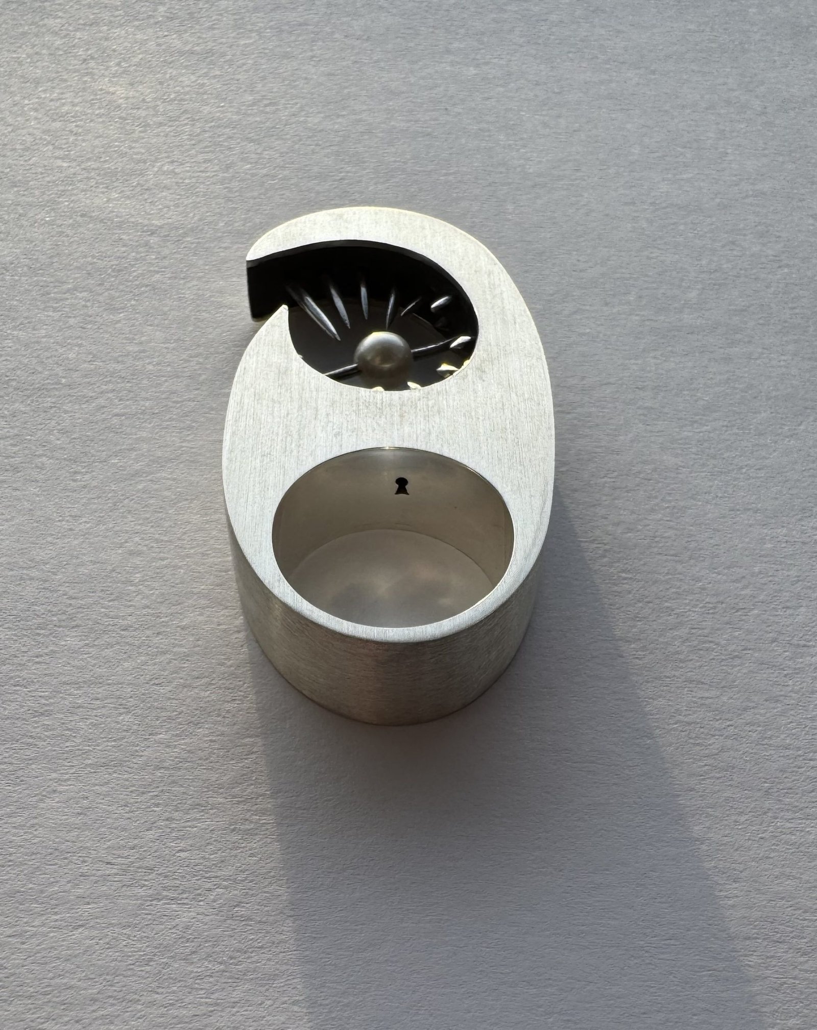 My aesthetic is also defined by contrast and duality; I often work with dark patina and bright silver to highlight this interplay. My pieces invites the viewer to consider their own internal landscapes. I aim to create jewellery that extends beyond adornment, establishing a contemplative space where inner narratives can be acknowledged, protected, and profoundly felt.