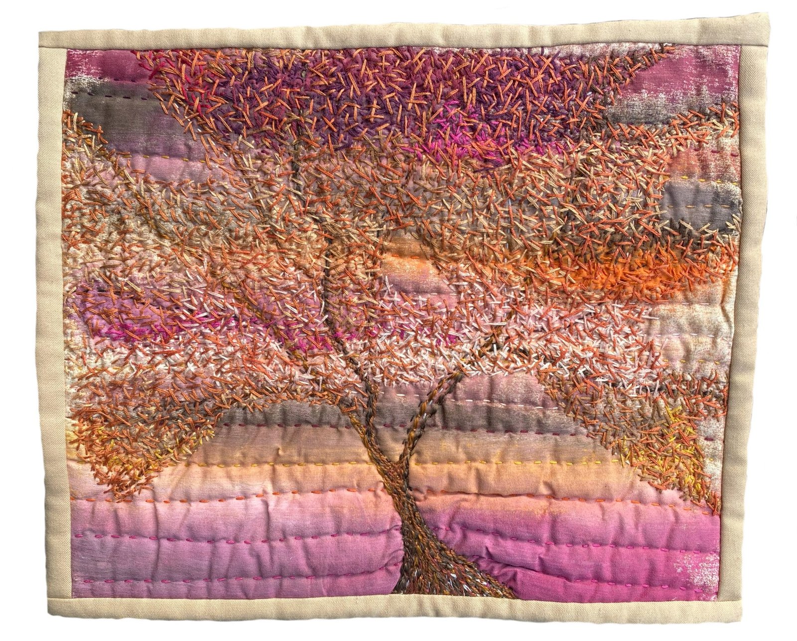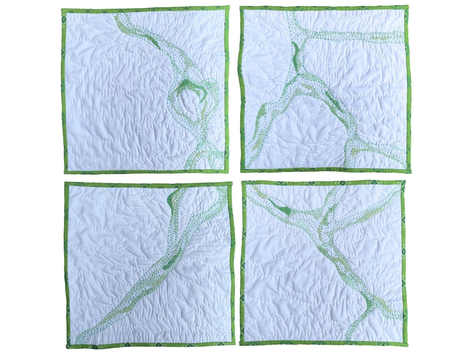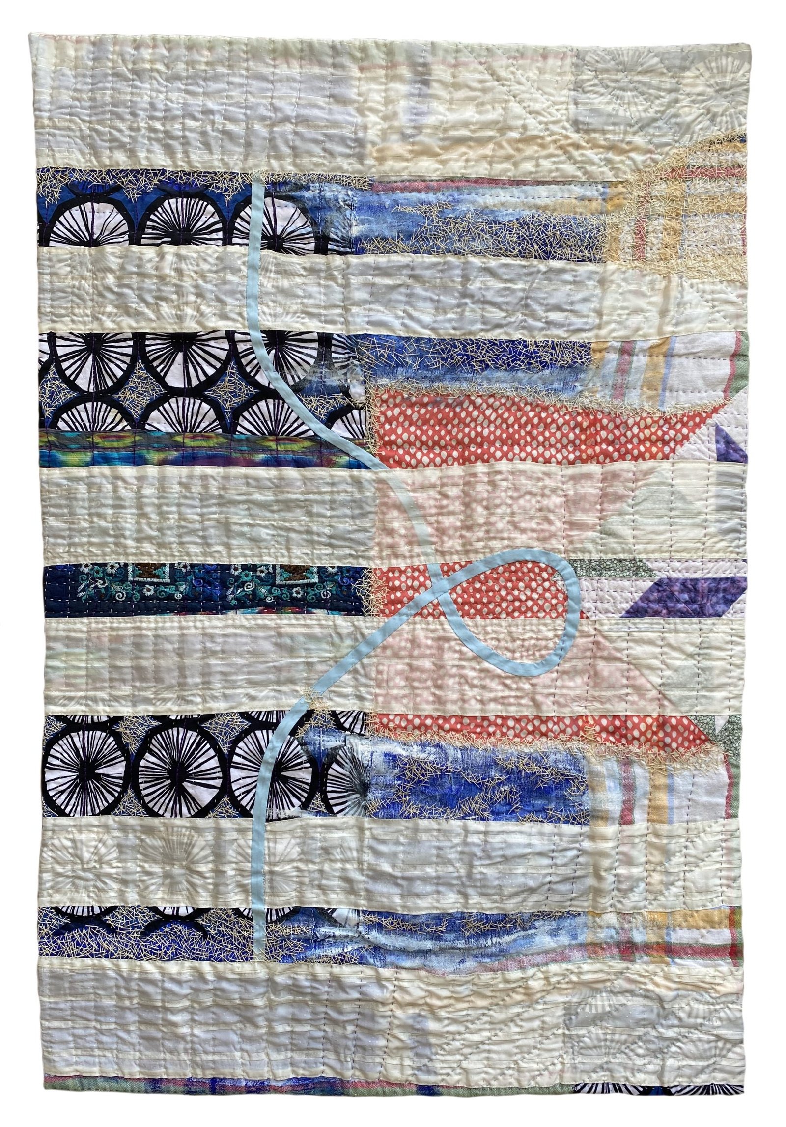 Through two-dimensional art pieces meant for traditional gallery wall display and interactive projects meant to engage the community with textiles, I create quilts that have surface design elements such as paint, embroidery, photo transfer and stitch. I seek to draw the viewer into an intimate experience, moving the eye across the surface in a textural journey.
