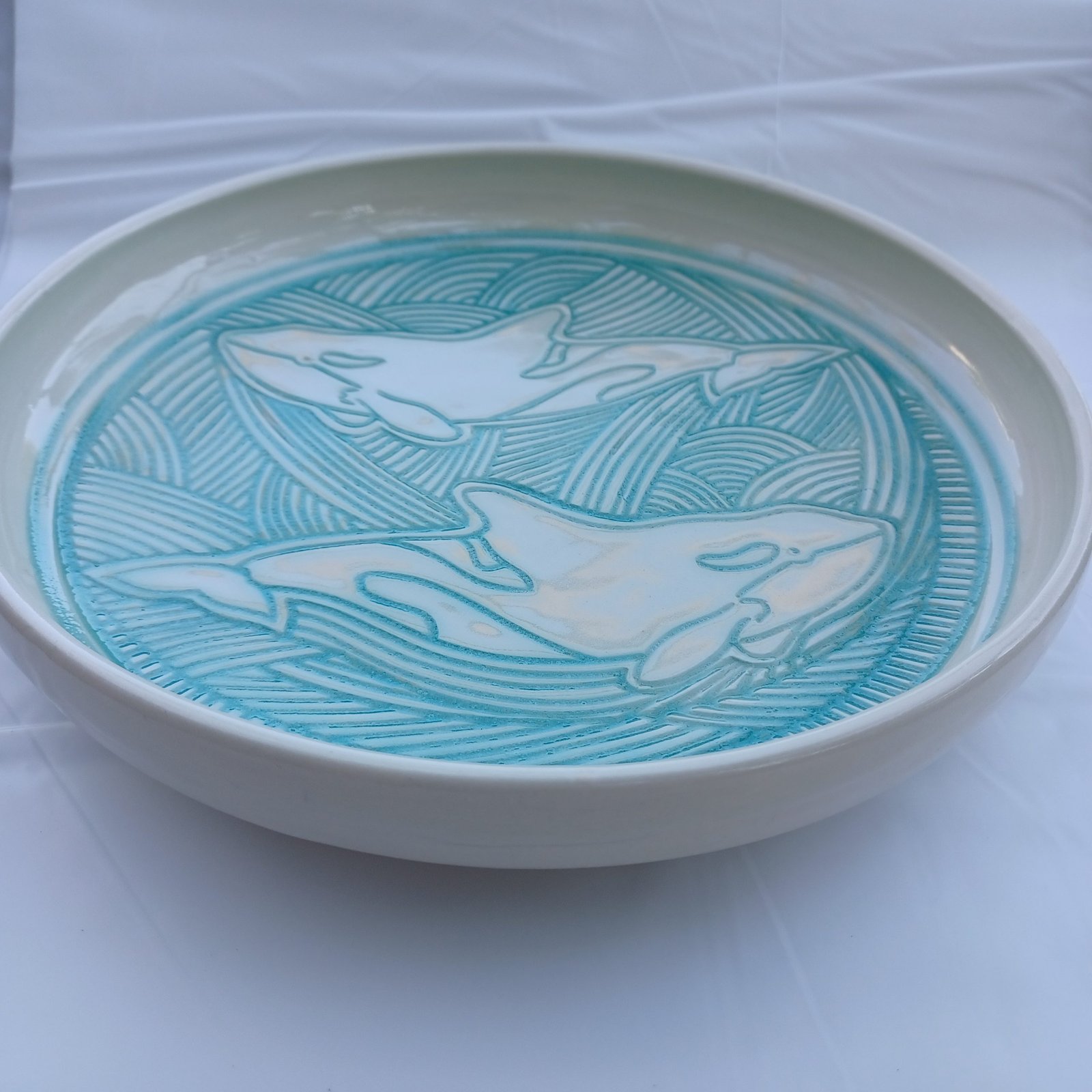 Her work explores themes of the natural world, incorporating bold and intricate carvings on the surfaces of her pieces. She works with clay creating both functional and sculptural pieces to create vivid and thought-provoking pieces that celebrate the beauty of the natural world.