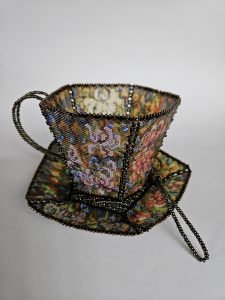 I create ornamental works with beads and sometimes with the addition of other materials.